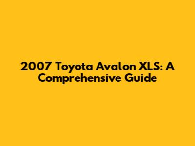 2007 Toyota Avalon XLS: Everything You Need To Know