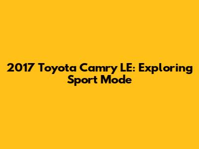 Hey guys! Let's dive into the sport mode feature in the 2017 Toyota Camry LE. If you're wondering what that "Sport" button does in your Camry LE, you're in the right place. This article breaks down everything you need to know about using and understanding sport mode in your 2017 Camry LE. Buckle up!