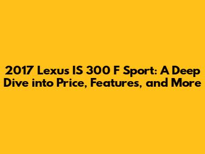 Hey car enthusiasts! Today, we're diving deep into the world of the 2017 Lexus IS 300 F Sport, a vehicle that perfectly blends luxury, performance, and head-turning style. If you're in the market for a compact luxury sports sedan, you've probably considered this beauty. But what exactly does the 2017 IS 300 F Sport offer, and most importantly, what can you expect to pay for it? Let's break it down, covering everything from the price to the features that make this car a standout in its class. We will analyze the price, and the features that distinguish this trim level, and provide a comprehensive overview to help you make an informed decision. Get ready to explore the exciting details of this remarkable car.