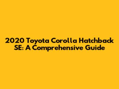 2020 Toyota Corolla Hatchback SE: A Comprehensive Guide