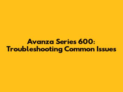 Avanza Series 600: Troubleshooting Common Issues