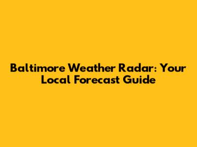 Baltimore Weather Radar: Your Local Forecast Guide