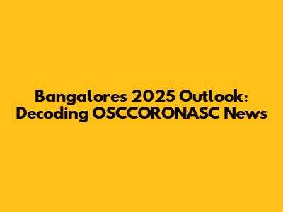 Bangalore's 2025 Outlook: Decoding OSCCORONASC News