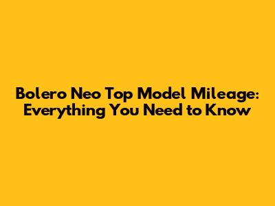 Bolero Neo Top Model Mileage: Everything You Need To Know