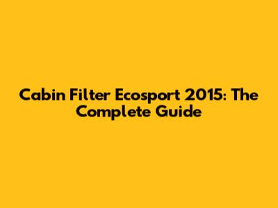 Cabin Filter Ecosport 2015: The Complete Guide