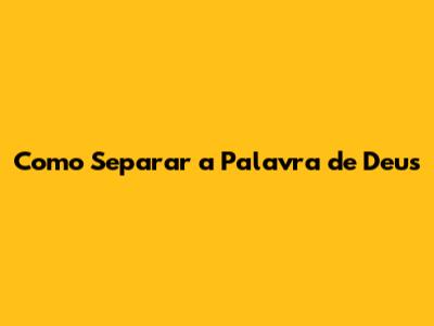 Como Separar A Palavra De Deus