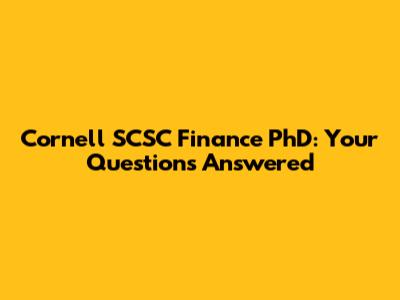 Cornell SCSC Finance PhD: Your Questions Answered