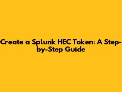 Create A Splunk HEC Token: A Step-by-Step Guide