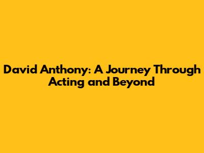 David Anthony: A Journey Through Acting And Beyond