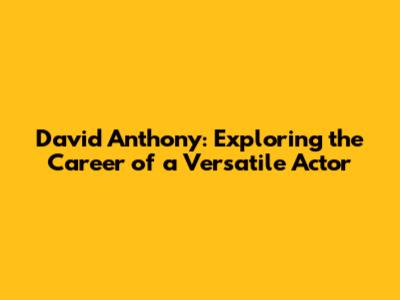David Anthony: Exploring The Career Of A Versatile Actor
