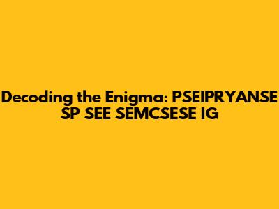 Finally, we arrive at SEMCSESE IG, another intriguing string of letters that demands our attention. Like PSEIPRYANSE, this acronym requires a systematic approach to decode. Let's break it down and consider its potential meanings.