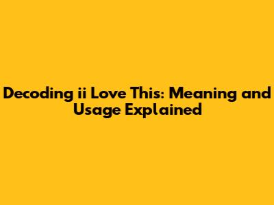 Decoding 'ii Love This': Meaning And Usage Explained