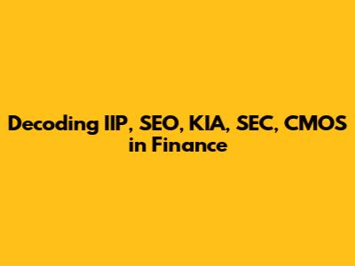 Decoding IIP, SEO, KIA, SEC, CMOS In Finance