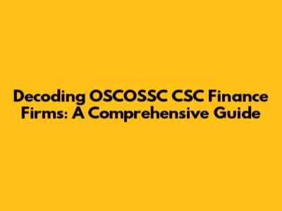 Decoding OSCOSSC CSC Finance Firms: A Comprehensive Guide