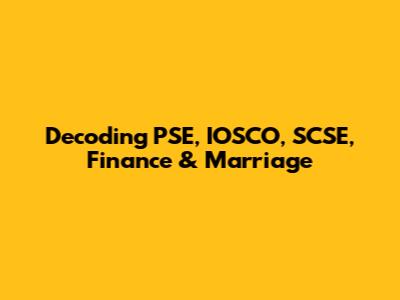 Decoding PSE, IOSCO, SCSE, Finance & Marriage