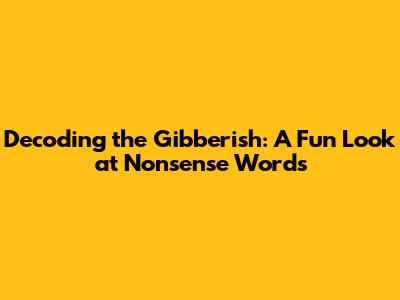 Decoding The Gibberish: A Fun Look At Nonsense Words