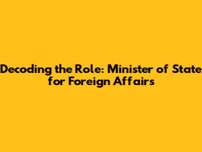 Hey everyone! Ever wondered what a Minister of State for Foreign Affairs actually does? It's a role that often flies under the radar, but it's super important in the grand scheme of international relations. Think of them as the right-hand person to the Foreign Minister, working tirelessly behind the scenes to keep the wheels of diplomacy turning smoothly. In this article, we'll dive deep into the responsibilities, significance, and impact of these key players in the world of foreign policy. We will discuss their critical functions, how they contribute to shaping international relations, and their significance in the overall diplomatic landscape. This will give you a comprehensive understanding of their influence and the multifaceted aspects of their roles.