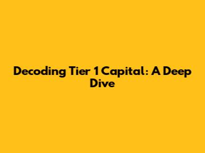 Decoding Tier 1 Capital: A Deep Dive