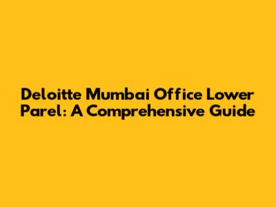 Hey guys! Are you trying to find the Deloitte Mumbai office in Lower Parel? Or maybe you're just curious about what it's like? Whatever the reason, you've come to the right place! This guide will provide you with everything you need to know about Deloitte's Lower Parel office in Mumbai. We'll cover its location, how to get there, what services they offer, and even a little bit about the surrounding area. So, buckle up and let's dive in!