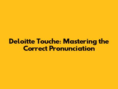 Deloitte Touche: Mastering The Correct Pronunciation