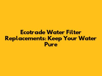 Finding the Right Ecotrade Replacement Filters