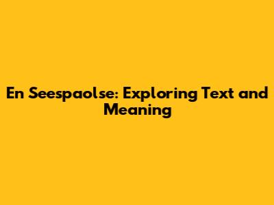 En Seespaolse: Exploring Text And Meaning