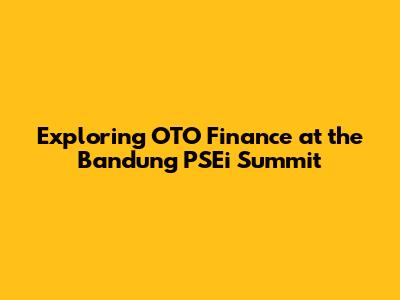 Hey there, finance enthusiasts! Ever heard of OTO Finance? If you're a Bandung local, or even just curious about the Indonesian financial scene, you're in the right place. We're diving deep into the world of OTO Finance and its presence at the Bandung PSEi Summit. This article is your ultimate guide, breaking down everything you need to know about this exciting financial player and its impact on the local economy. We'll explore what OTO Finance is all about, what the PSEi Summit is, and how these two powerhouses come together to create opportunities for growth, investment, and a whole lot of financial innovation in the vibrant city of Bandung. So, buckle up, grab your favorite drink, and let's get started on this financial adventure!