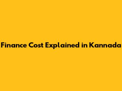 Finance Cost Explained In Kannada