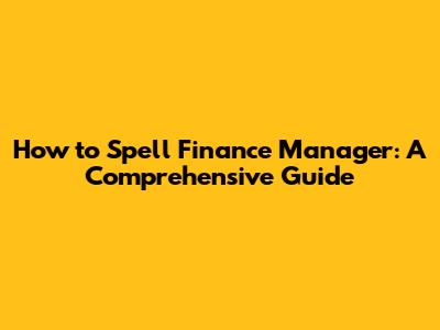 How to Spell Finance Manager: A Comprehensive Guide