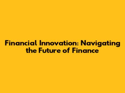 Financial Innovation: A Comprehensive Guide