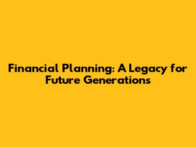 Financial Planning: A Legacy For Future Generations