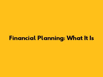 Financial Planning: What It Is