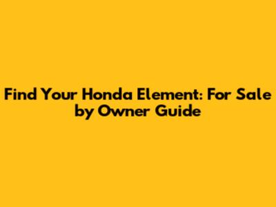 Find Your Honda Element: For Sale By Owner Guide