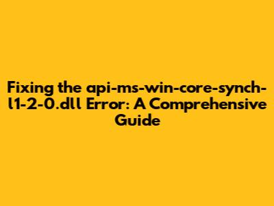 Fixing The Api-ms-win-core-synch-l1-2-0.dll Error: A Comprehensive Guide