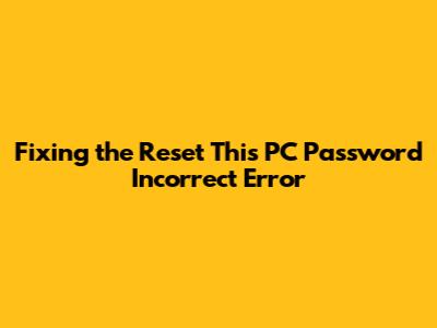 Understanding the "Reset This PC Password Incorrect" Error