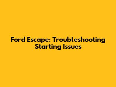 Ford Escape: Troubleshooting Starting Issues