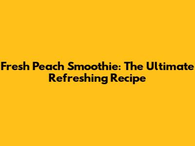 Fresh Peach Smoothie: The Ultimate Refreshing Recipe