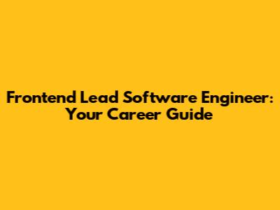 Frontend Lead Software Engineer: Your Career Guide
