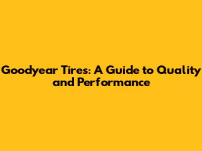 Goodyear Tires: A Guide To Quality And Performance
