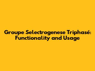 Groupe Selectrogenese Triphasé: Functionality And Usage