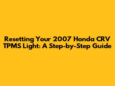 Honda CRV 2007 TPMS Light Reset Guide