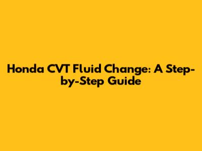 Honda CVT Fluid Change: A Step-by-Step Guide