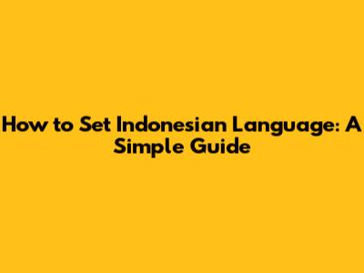 How To Set Indonesian Language: A Simple Guide