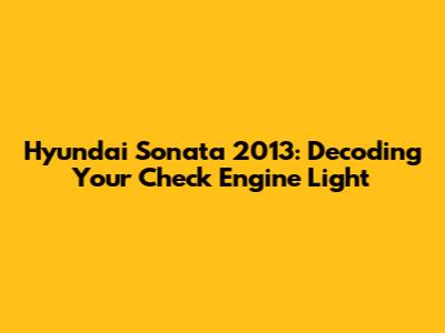 Hyundai Sonata 2013: Decoding Your Check Engine Light