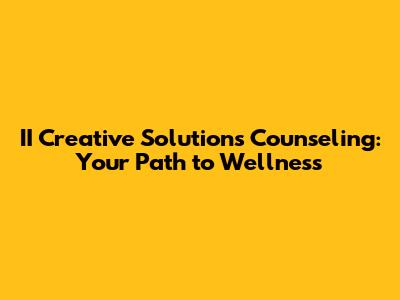 II Creative Solutions Counseling: Your Path To Wellness