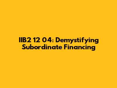 Hey everyone! Ever heard of IIB2 12 04 and wondered what the heck subordinate financing is all about? Well, you're in the right place! We're going to break down this somewhat complex topic in a super easy-to-understand way, so you can sound like a pro at your next business lunch. This is your go-to guide for understanding the ins and outs of IIB2 12 04 and how subordinate financing works. Prepare to have all your questions answered, from the basic definitions to the nitty-gritty details of how it all functions. Let’s dive in and make sure you understand the basics of this important topic. So, grab your favorite beverage, get comfy, and let's unravel the mysteries of subordinate financing! We will explore everything you need to know about IIB2 12 04. Trust me, once we're done, you'll be able to explain this to your friends, family, and even your boss! So let's get started. We will cover the definition, the process, and the advantages and disadvantages. Let’s make sure you know exactly what is going on and feel confident in your understanding of the financial world. Are you ready? Let's go!