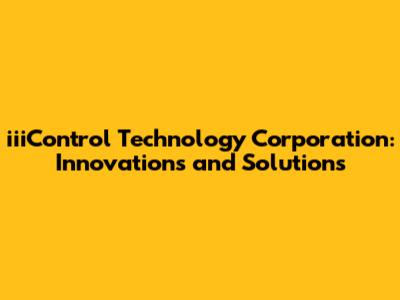 IiiControl Technology: Innovations And Solutions