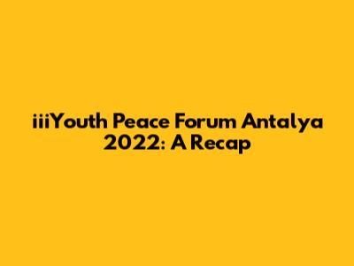 Hey everyone, let's dive into the iiiYouth Peace Forum Antalya 2022! This event was a blast and packed with insightful discussions, amazing people, and a whole lot of energy focused on one crucial topic: peace. Held in the beautiful city of Antalya, Turkey, the forum brought together young leaders, activists, and thinkers from all corners of the globe. The goal? To brainstorm, collaborate, and come up with innovative solutions to foster peace and understanding in our world. Think of it as a massive think-tank meets networking event, all dedicated to making the world a better place. It was a melting pot of ideas, cultures, and perspectives, and I'm stoked to share some of the highlights. So, grab a coffee (or whatever your drink of choice is) and let's get into what made the iiiYouth Peace Forum Antalya 2022 so special. We're talking about everything from the key themes that shaped the discussions to the lasting impact it’s likely to have on the future of peace-building efforts. Ready? Let's go!