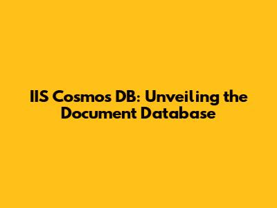 IIS Cosmos DB: Unveiling The Document Database