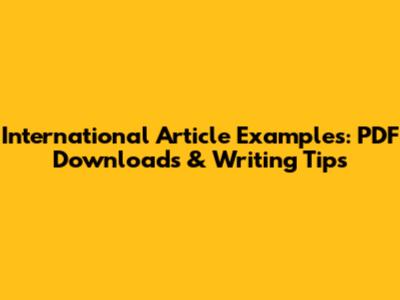 International Article Examples: PDF Downloads & Writing Tips